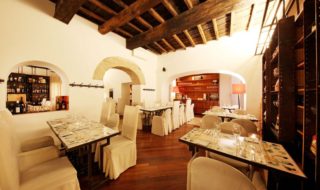 Al suo interno arredamento raffinato con comodi tavolini per mangiare e un ottima cantina di vini da scegliere.
