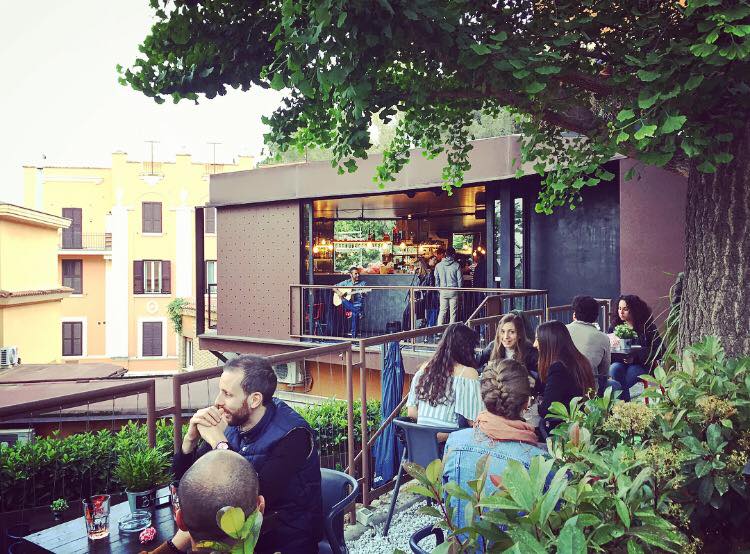 Sarete avvolti dal verde del Gianicolo alle vostre spalle, seduti su tavolini in legno mentre vi gustate ottimi cocktail.
